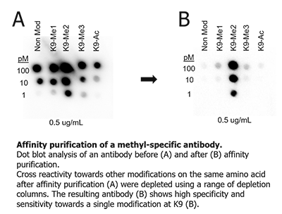 We can also generate custom affinity resins to immobilize target-specific compounds, peptides, or recombinant proteins to affinity purify antibodies from various fluids or deplete antibodies from these preparations.